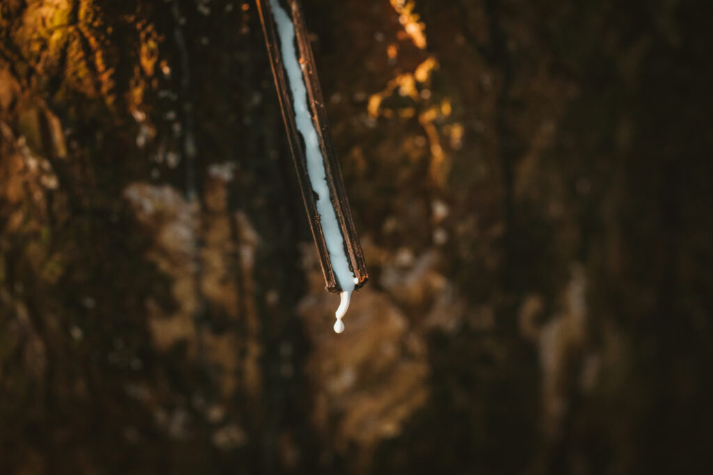 Naturkautschuk ist ein Agrarprodukt – seine Gewinnung erfordert Erfahrung, Geduld und präzises Handwerk. Trotzdem sind faire Handelsstrukturen in diesem Bereich bislang kaum etabliert. Schwankende Weltmarktpreise, unsichere Einkommen und geringe Wertschätzung prägen vielerorts den Alltag der Kautschuk-Zapfer.